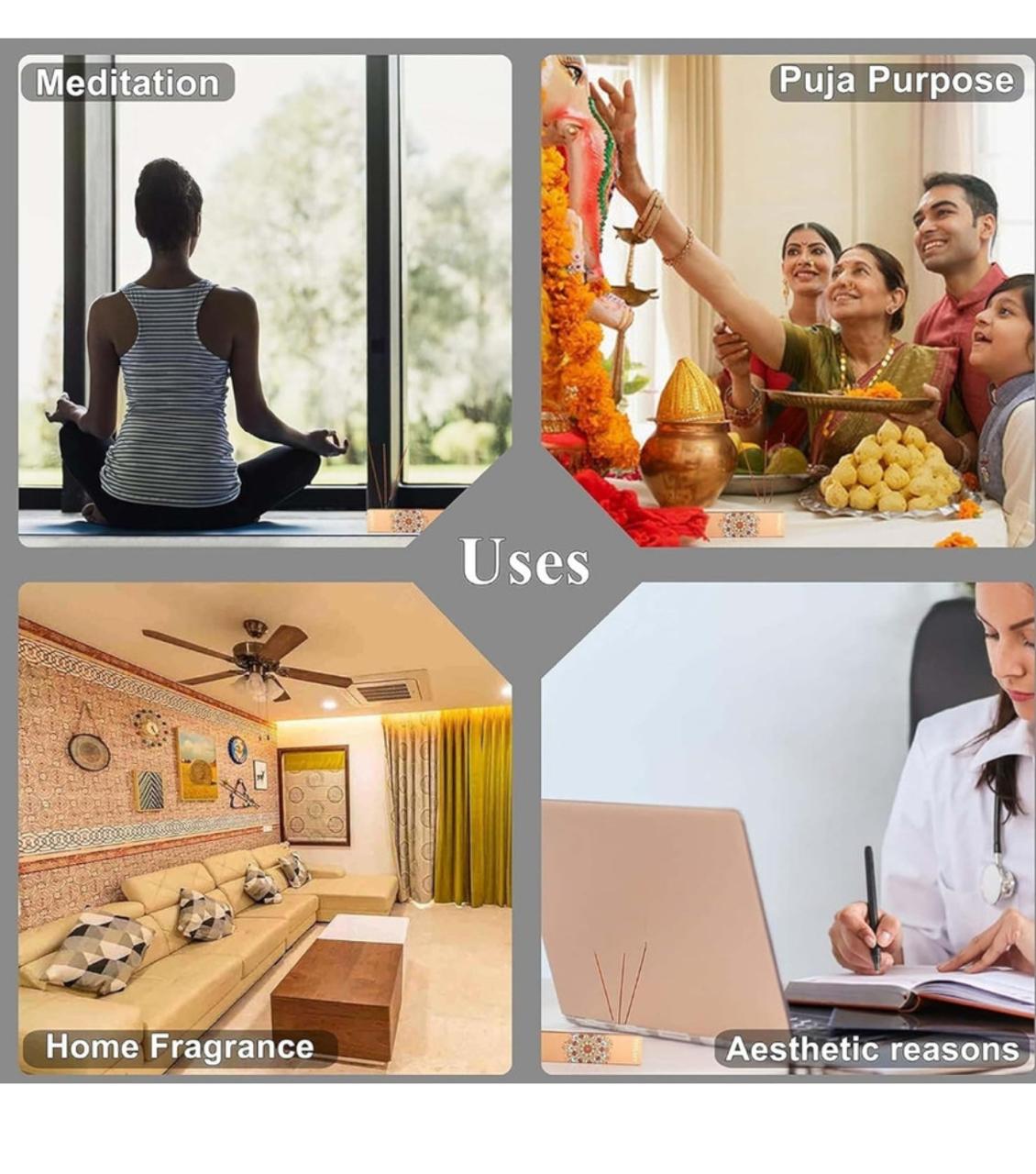 - Benefit:- Burning Incense Sticks Creates A Fresh Environment Made Using All-Natural Ingredients It Is Easy To Use Creates A Delightful Atmosphere That Will Bring Peace And Joy